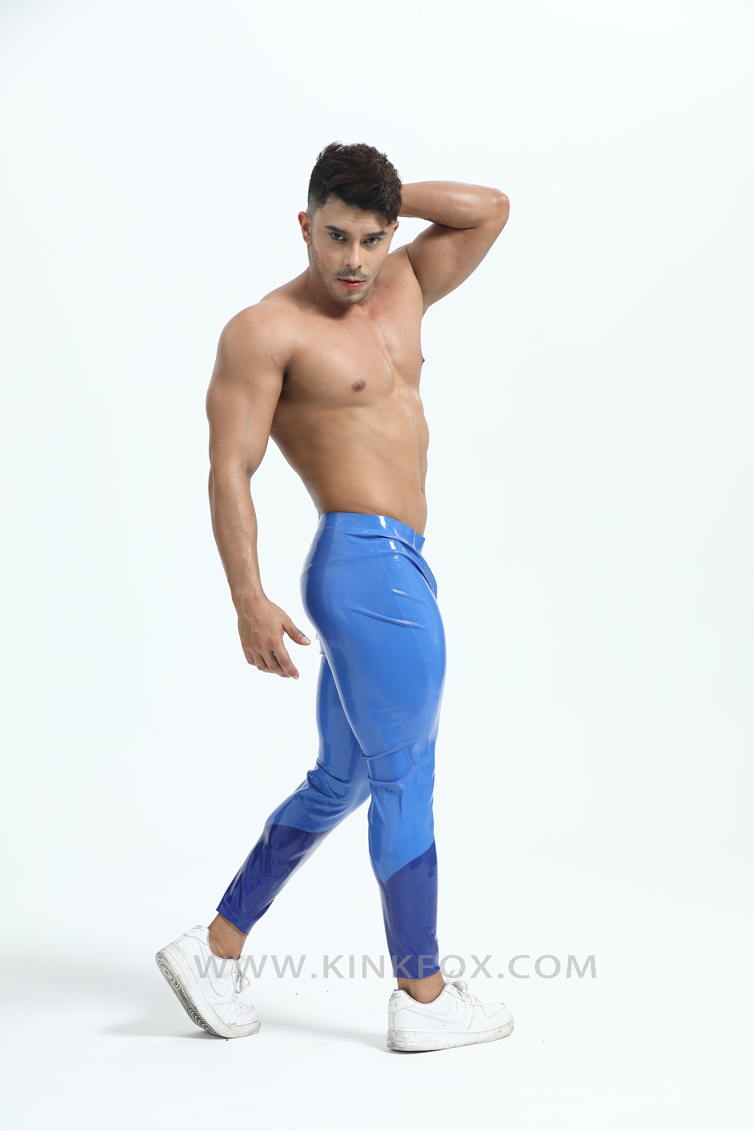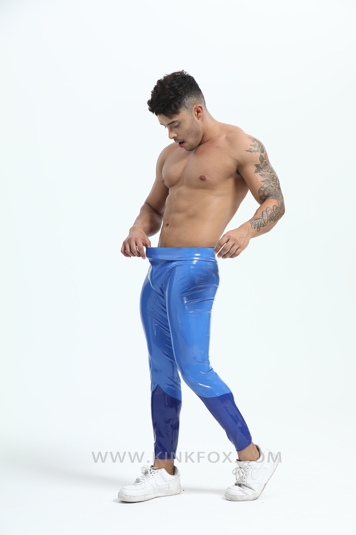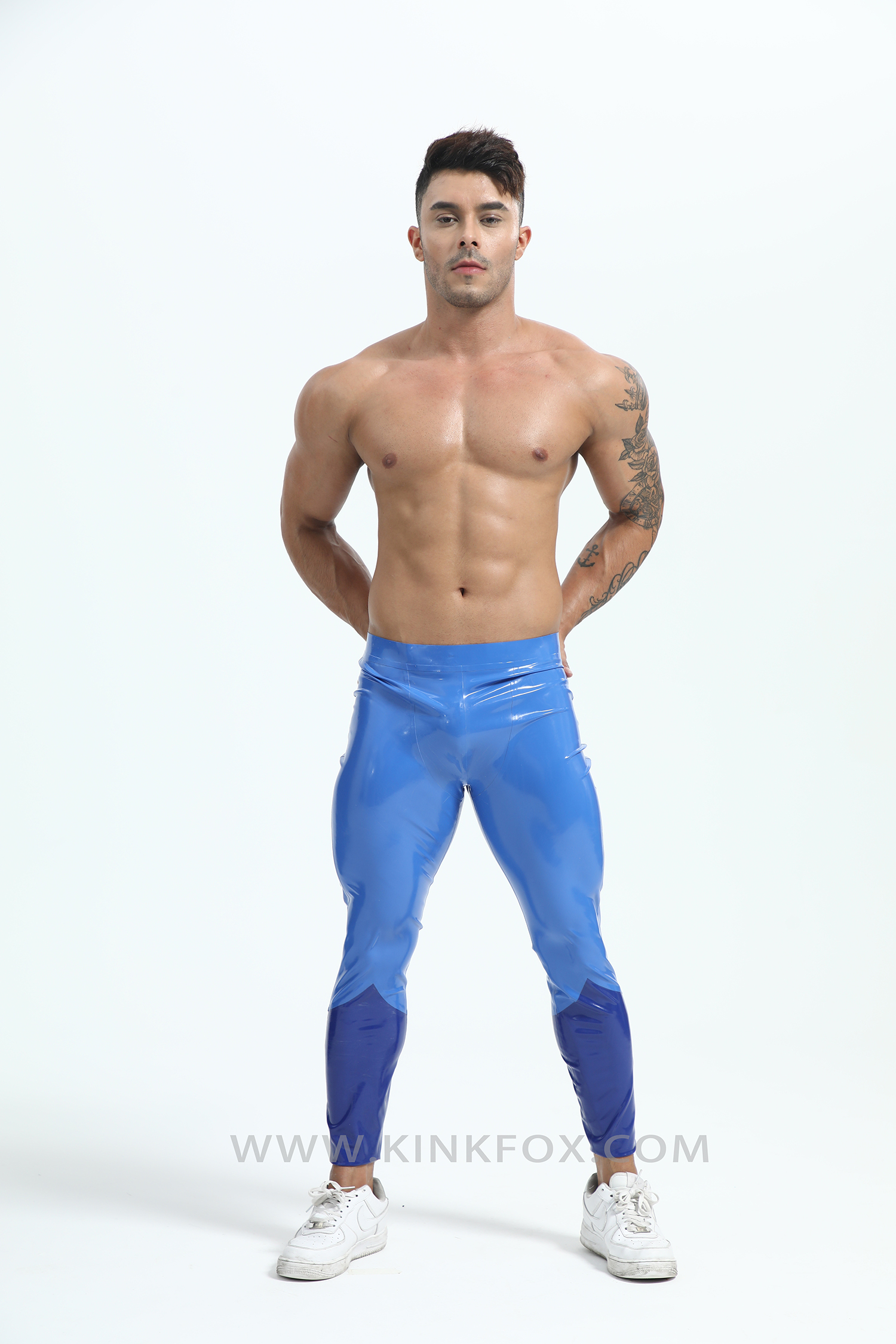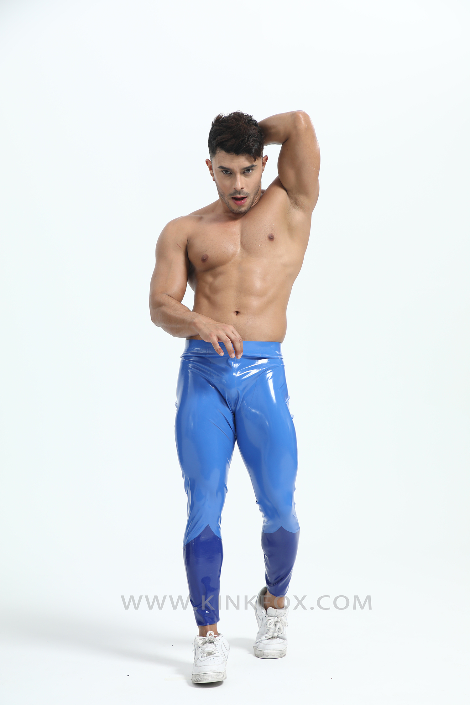 Dive into precision with Neptune Vector — a sleek embodiment of oceanic power and aerodynamic design. These two-tone blue latex leggings fuse deep marine tones with luminous highlights, tracing the body like shifting waves under light. Every curve flows with engineered intent, creating a silhouette that’s both fluid and commanding.