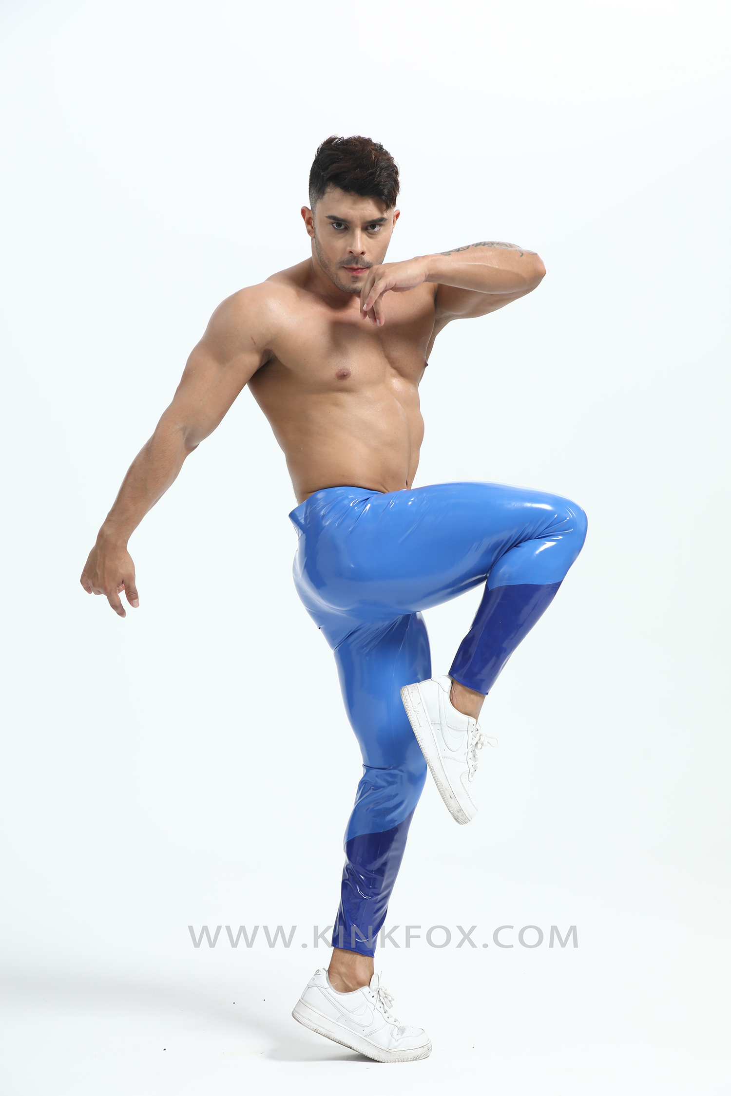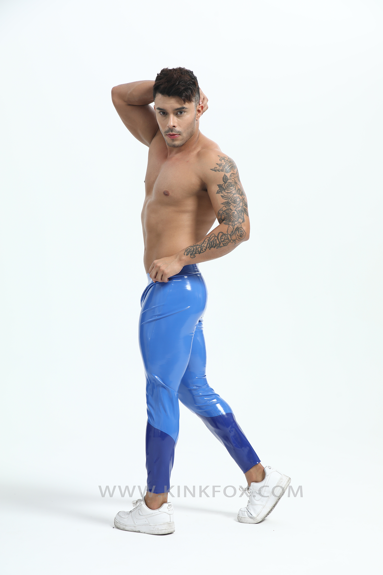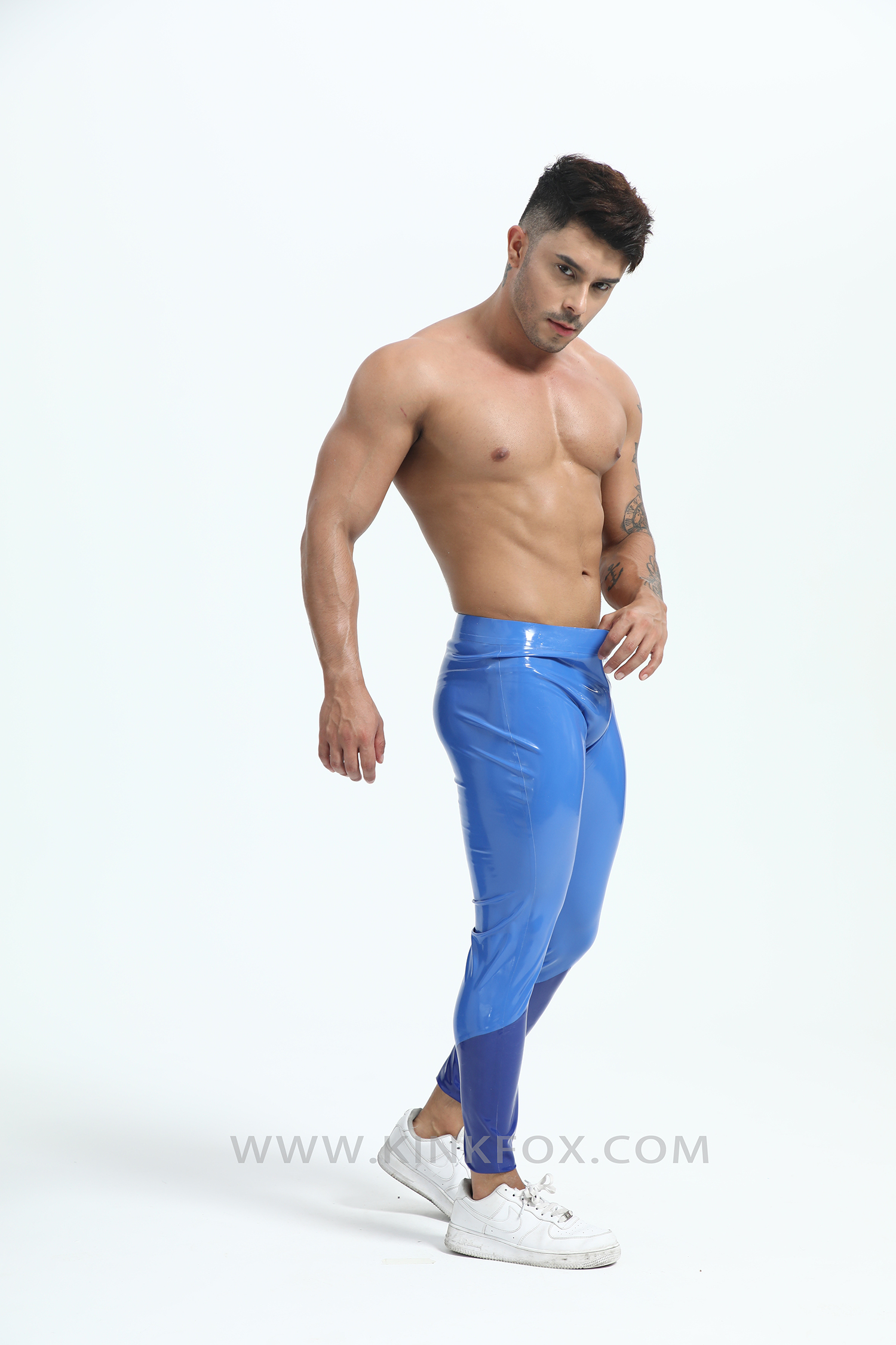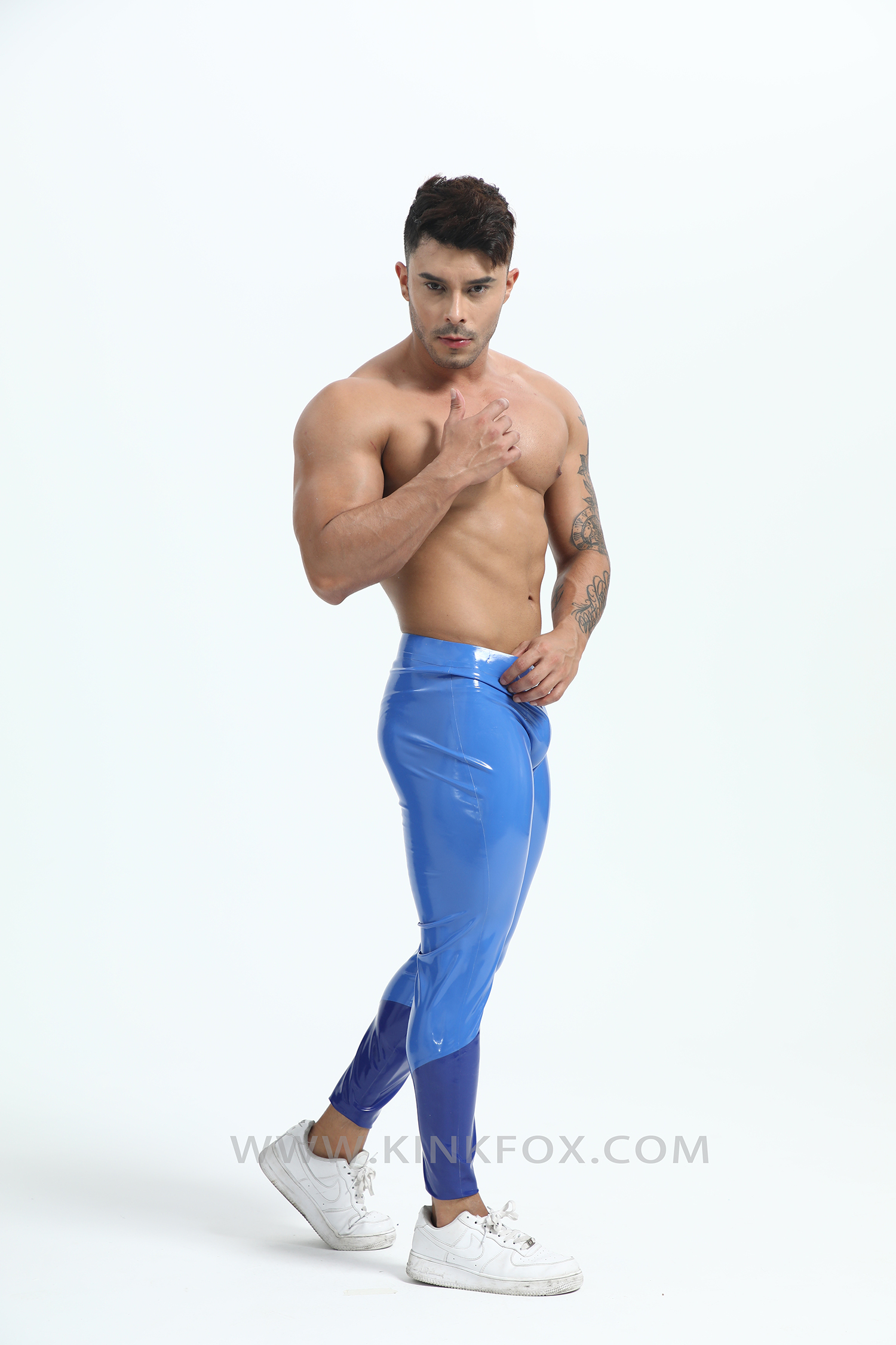 Dive into precision with Neptune Vector — a sleek embodiment of oceanic power and aerodynamic design. These two-tone blue latex leggings fuse deep marine tones with luminous highlights, tracing the body like shifting waves under light. Every curve flows with engineered intent, creating a silhouette that’s both fluid and commanding.
