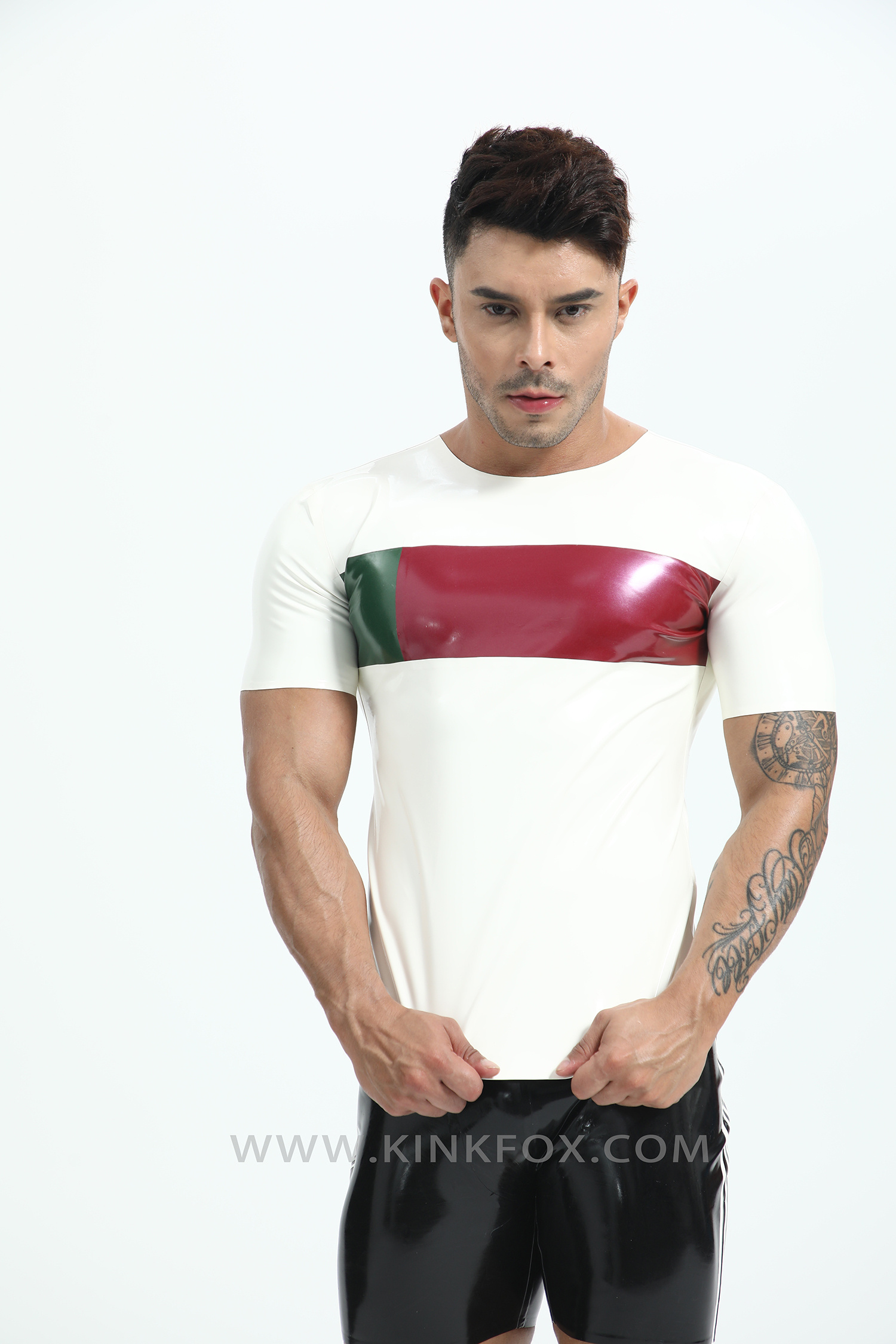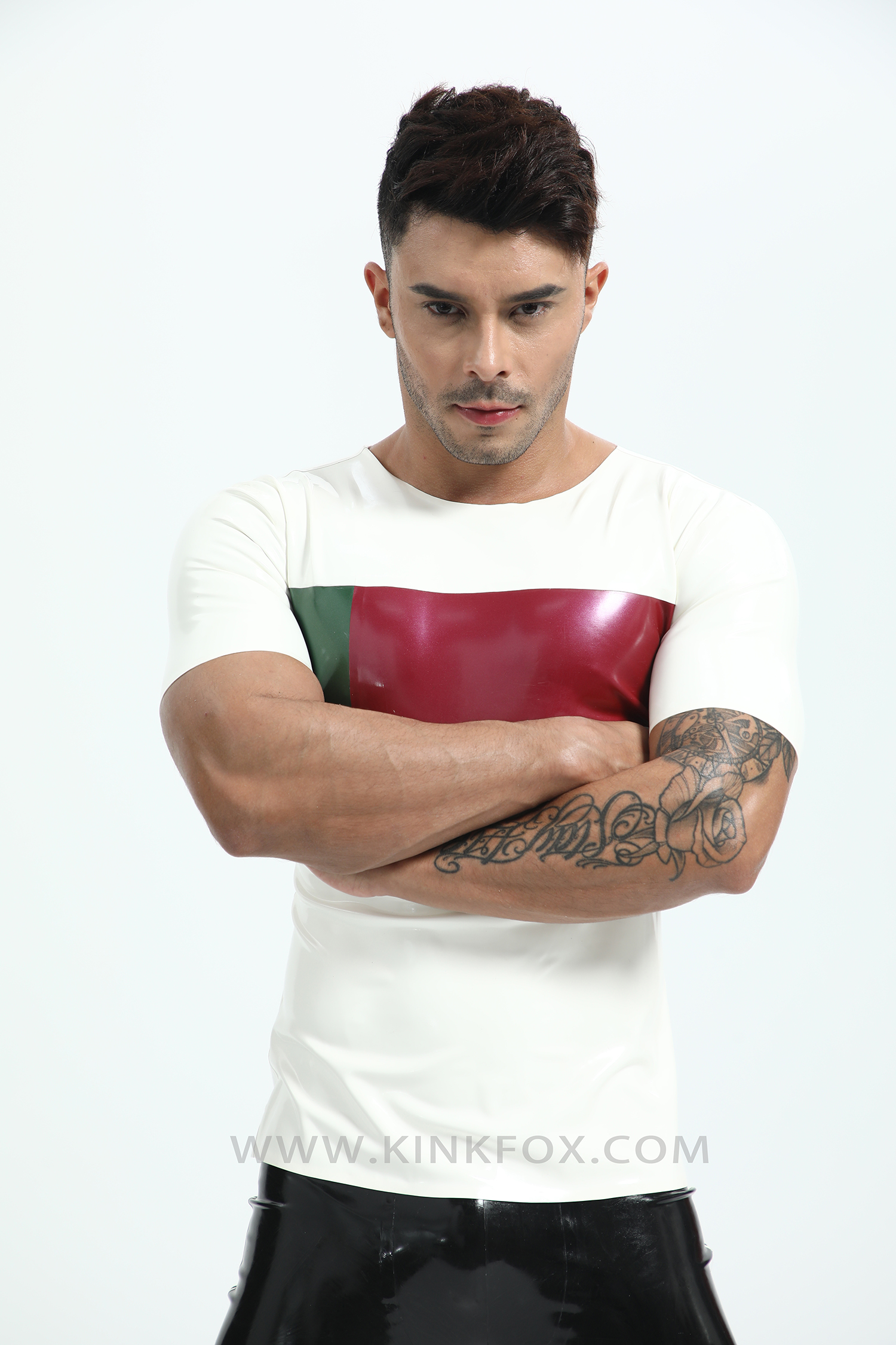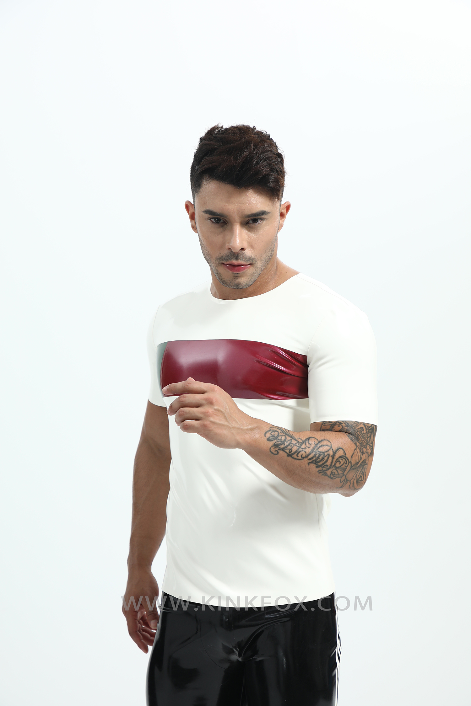 The Polar Divide top captures the tension between contrast and control — where precision design meets glacial clarity. Crafted from premium latex, its smooth ivory base is interrupted by a bold horizontal band of deep red and forest green, forming a striking color block that symbolizes balance between heat and frost. The minimalist silhouette emphasizes structure and form, while the seamless finish amplifies its futuristic allure.