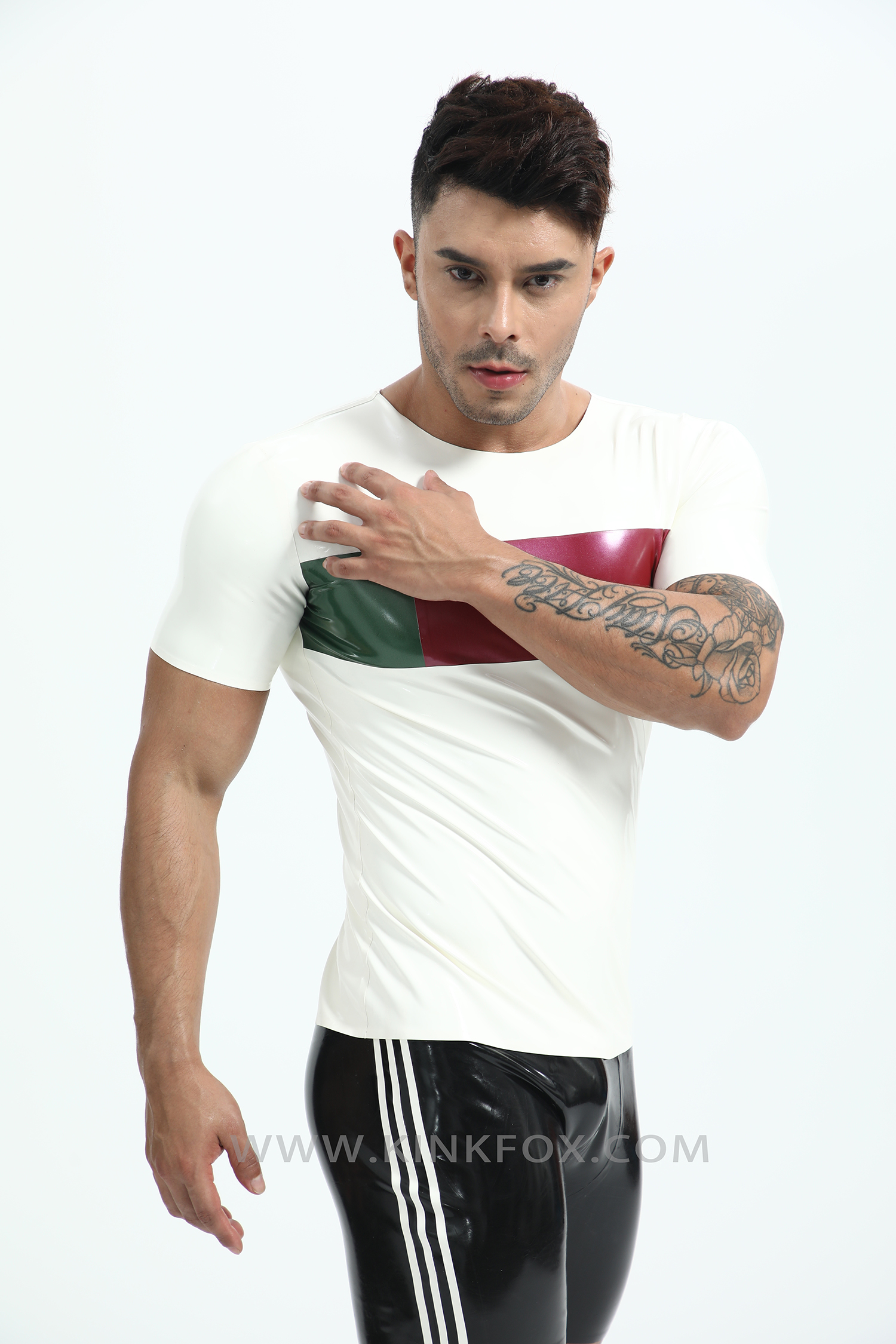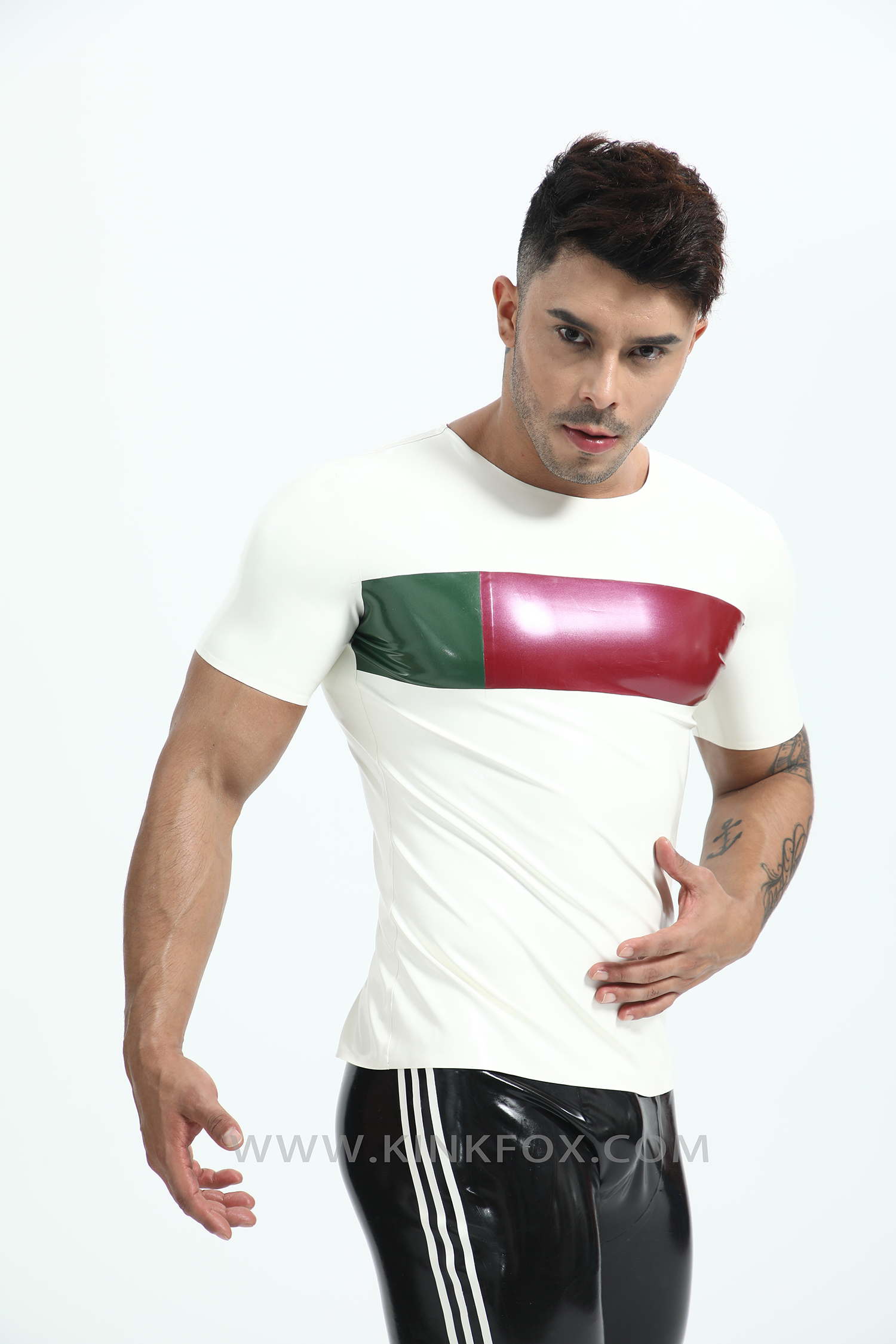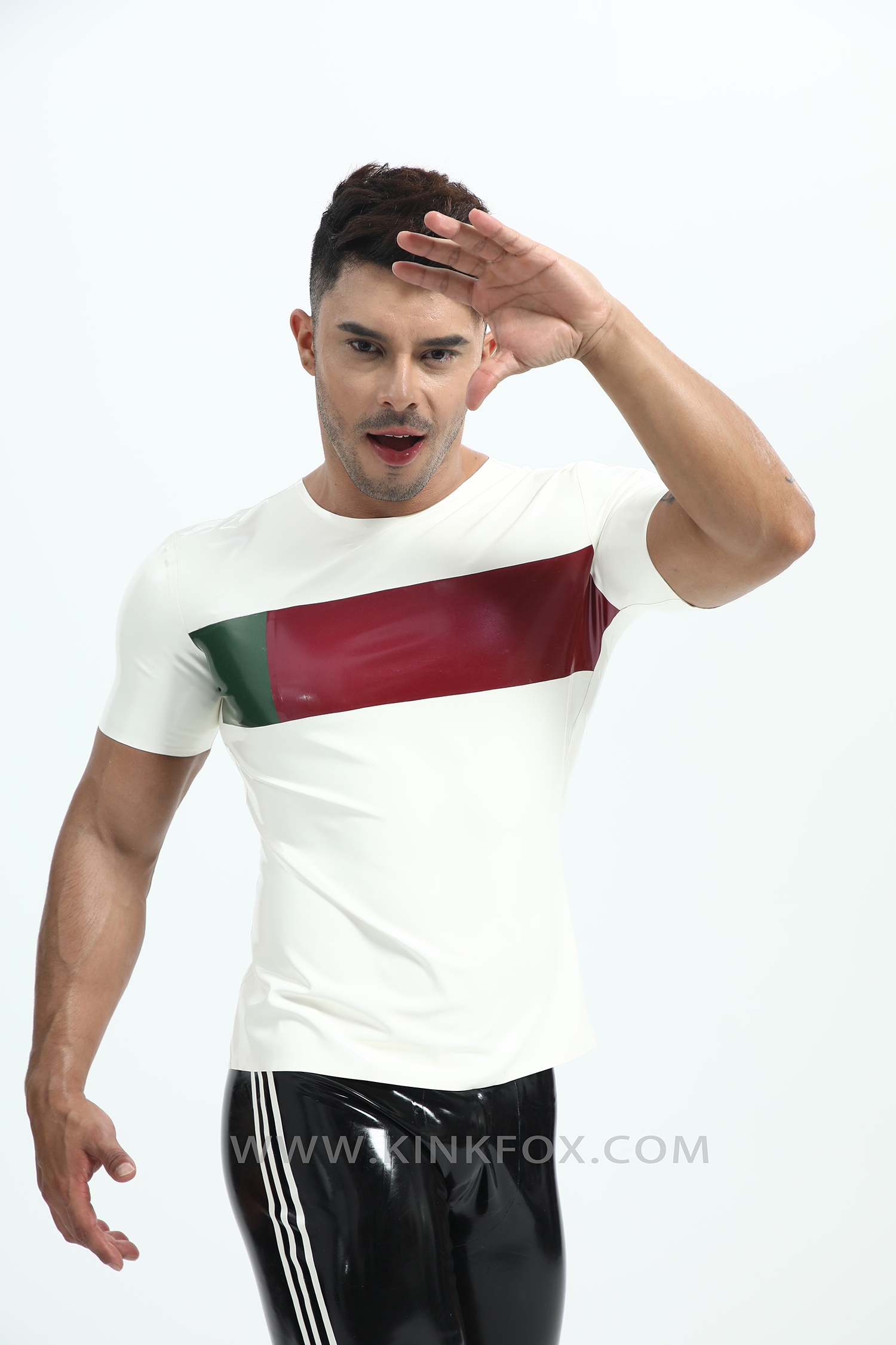 The Polar Divide top captures the tension between contrast and control — where precision design meets glacial clarity. Crafted from premium latex, its smooth ivory base is interrupted by a bold horizontal band of deep red and forest green, forming a striking color block that symbolizes balance between heat and frost. The minimalist silhouette emphasizes structure and form, while the seamless finish amplifies its futuristic allure.