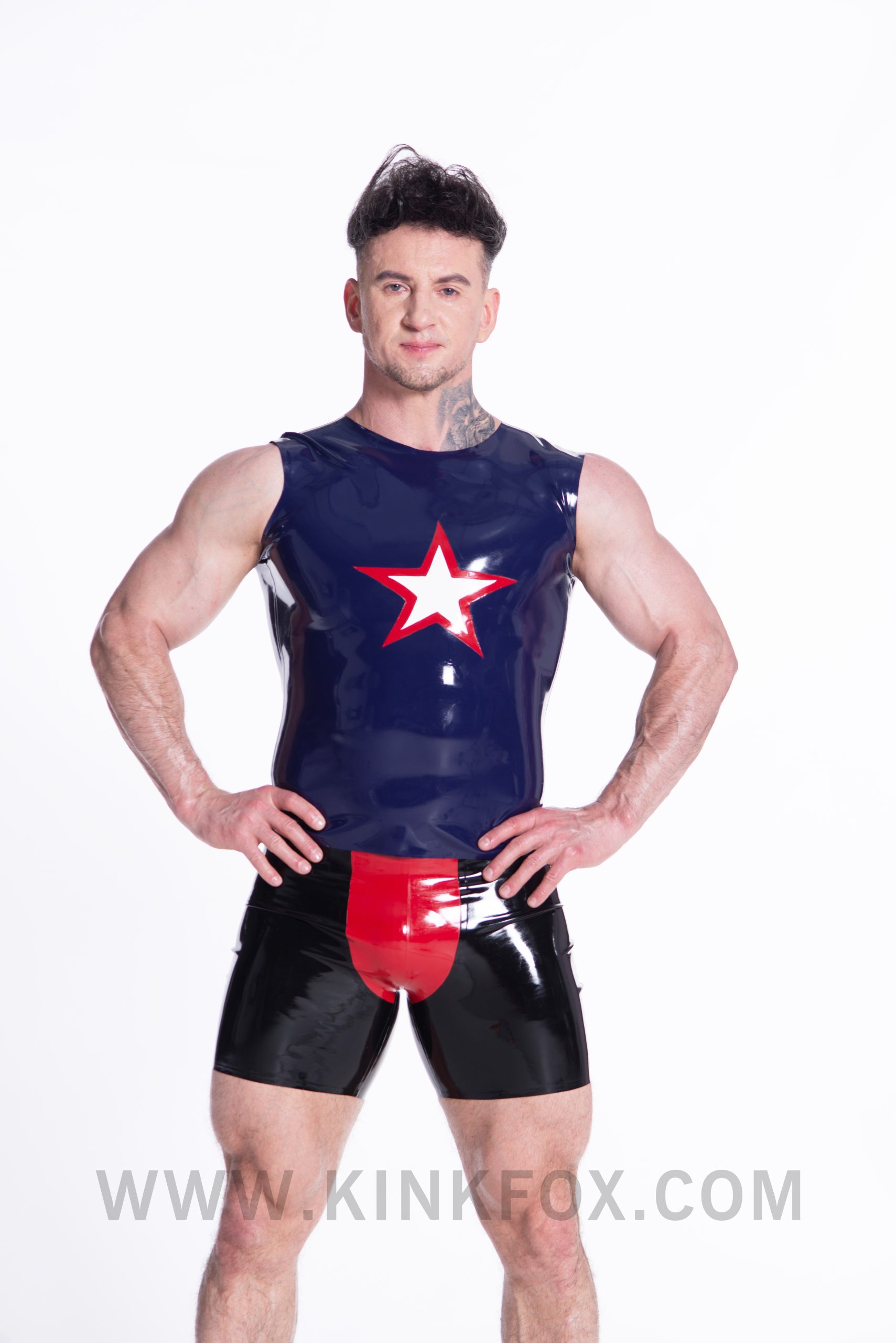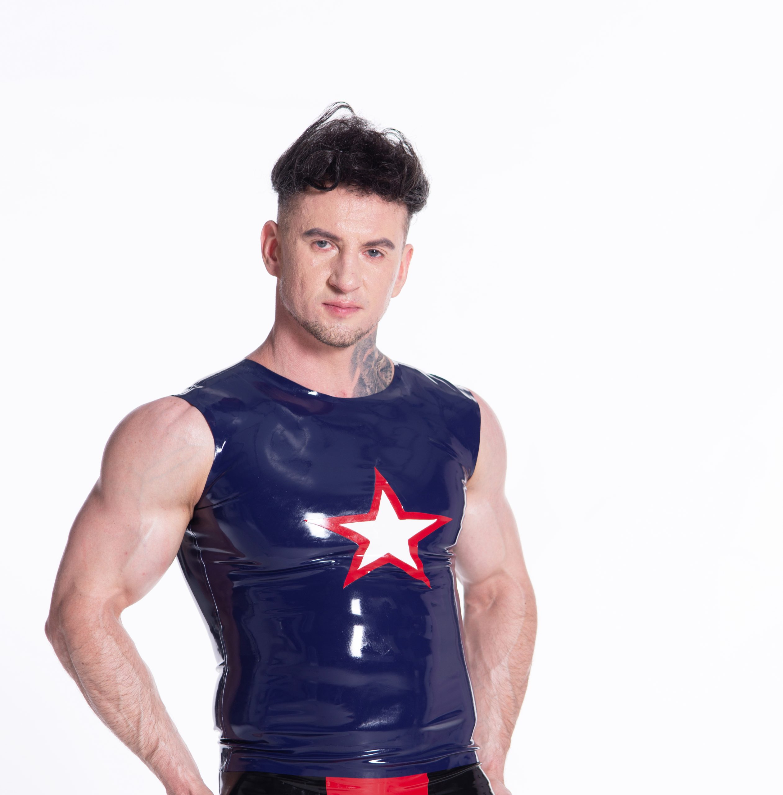 Embrace a cosmic look with the Starry Vibe tank top. The deep blue fabric serves as the perfect backdrop for vibrant red and white star patterns across the chest, creating a bold and energetic design. Whether you’re heading to a casual outing or adding a touch of starry allure to your everyday style, the Starry Vibe tank top offers both comfort and a striking visual impact.