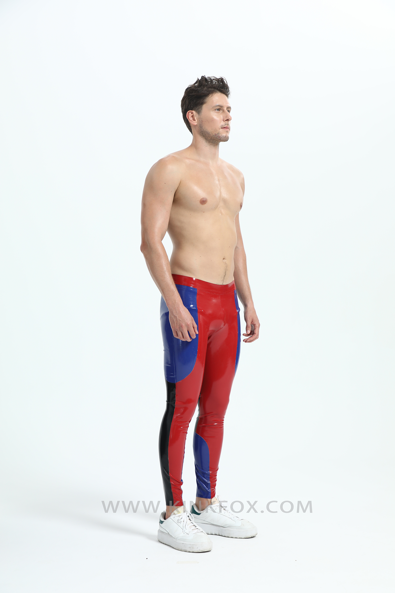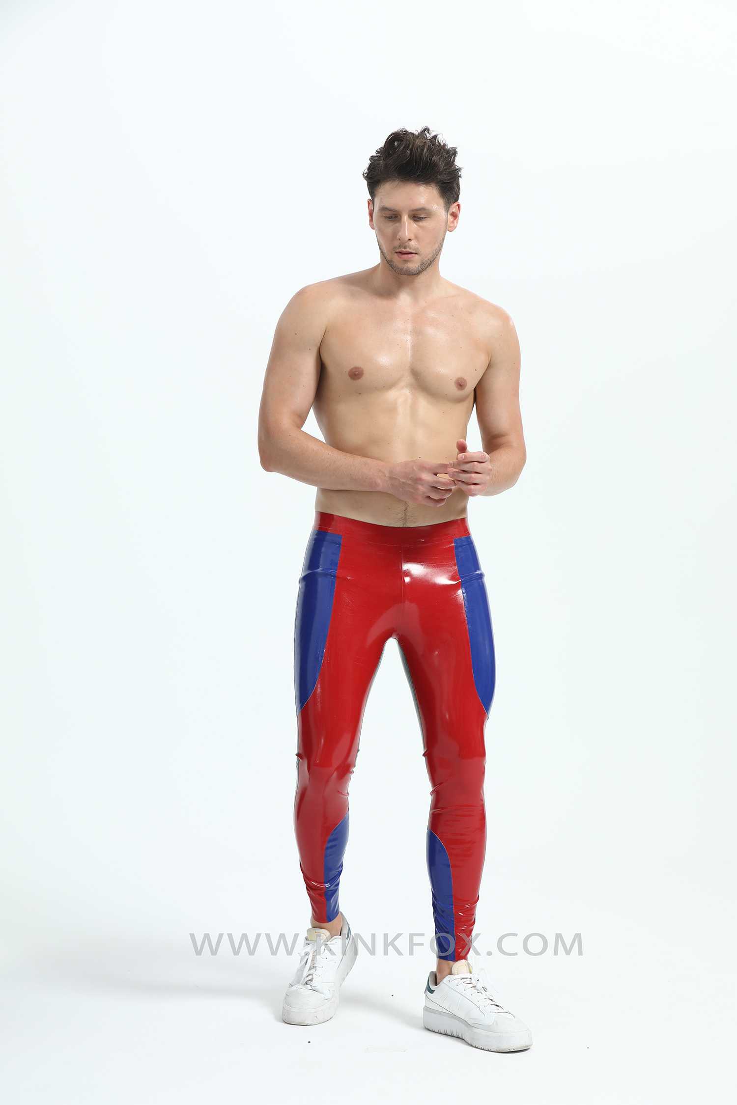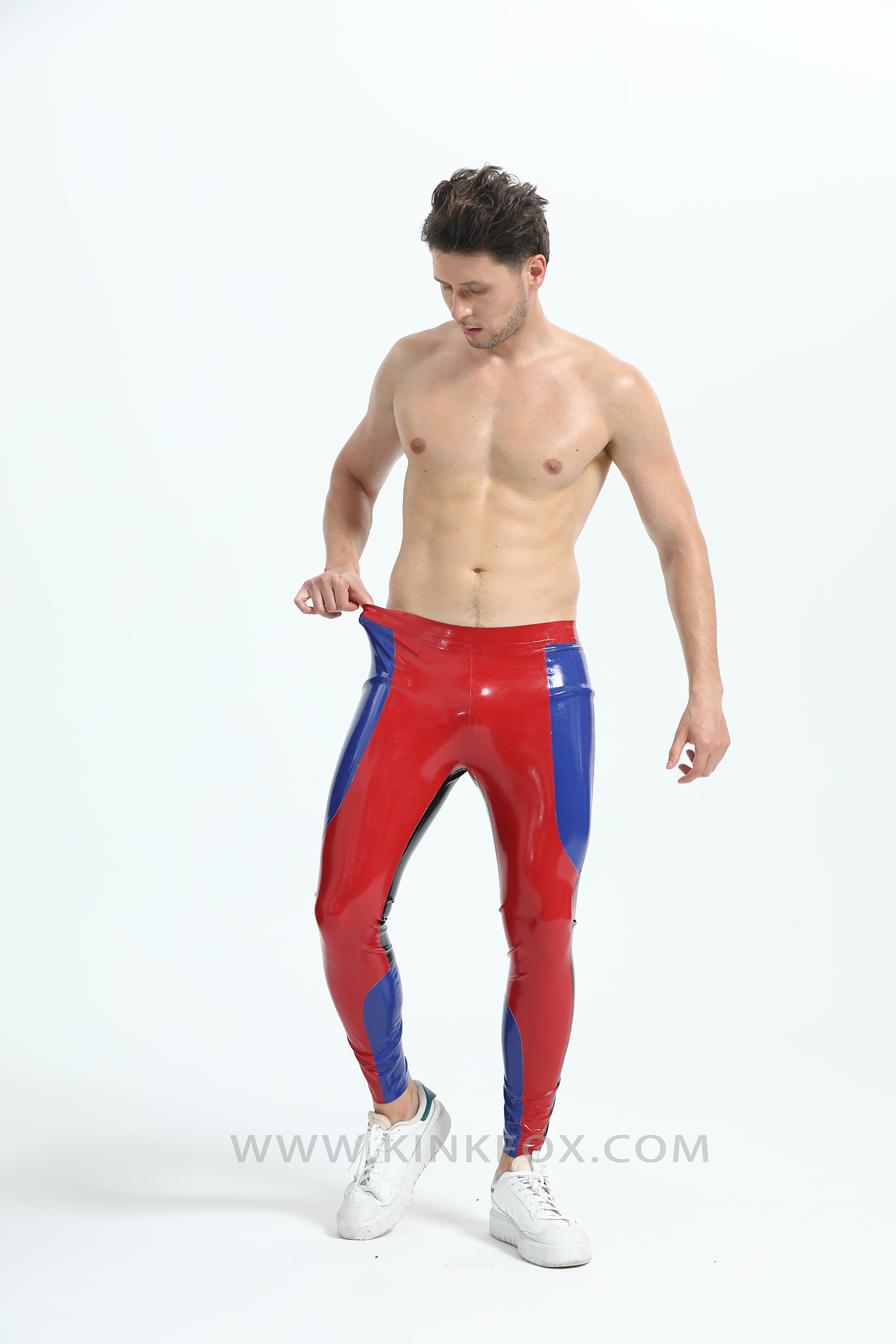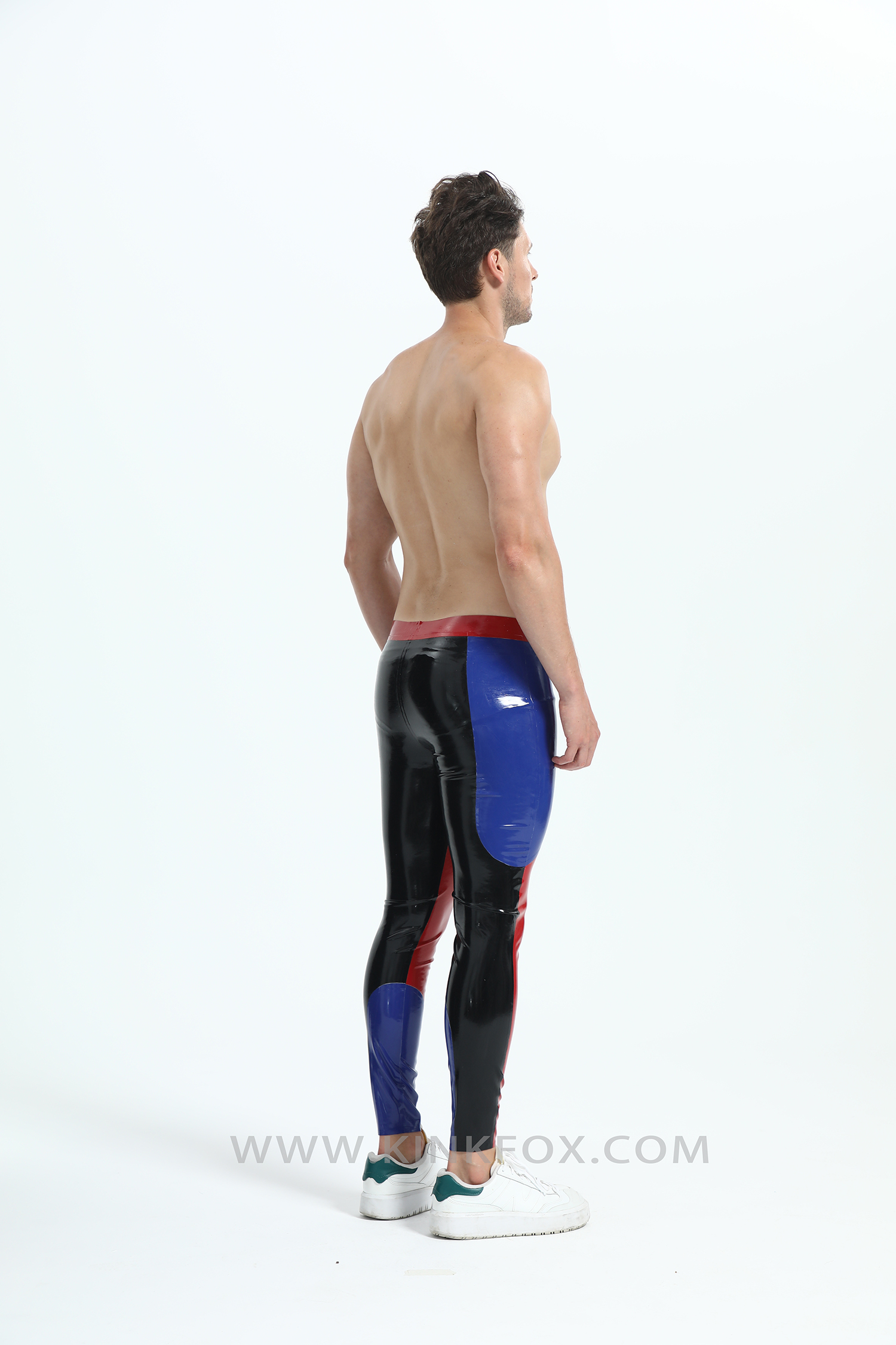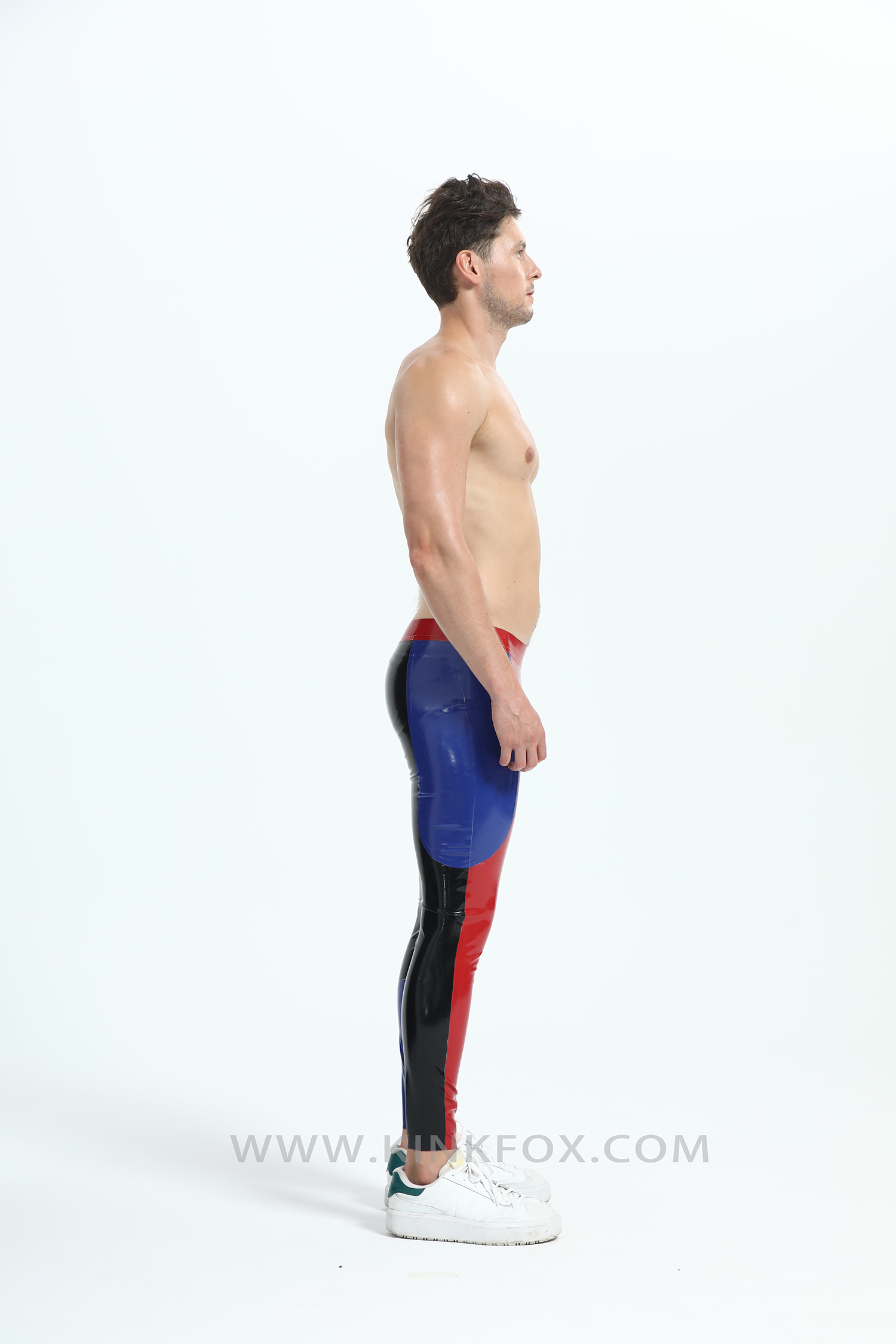 Capture attention with TriPhase — a bold convergence of color, motion, and precision. These latex leggings fuse red, blue, and black in a seamless interplay of contrast and control, evoking the pulse of kinetic energy and engineered rhythm. The tri-tone design sculpts the body in dynamic symmetry, channeling both power and agility.